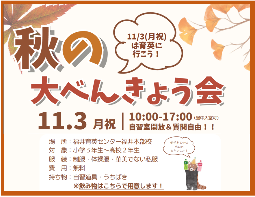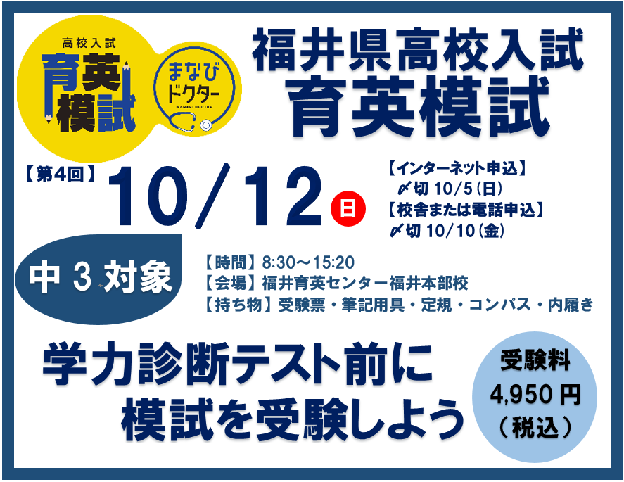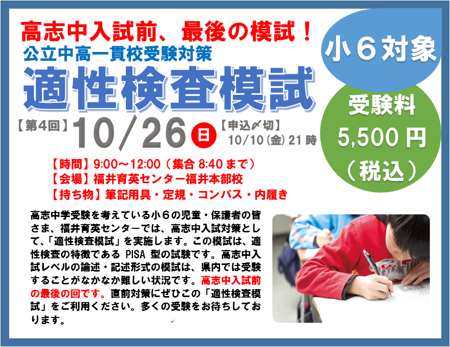 第4回 適性検査模試のご案内 (10/26実施)(10/10締切)
