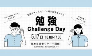 第1回の定期テストにむけて、育英センターでは「勉強 Challenge Day」という定期テスト対策イベントを実施します。